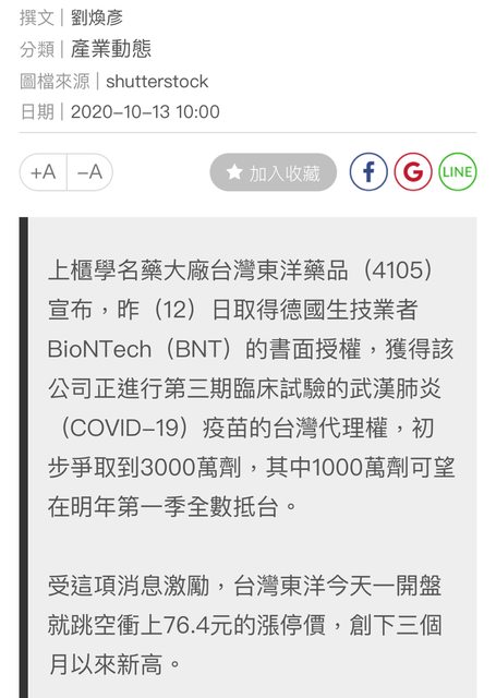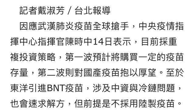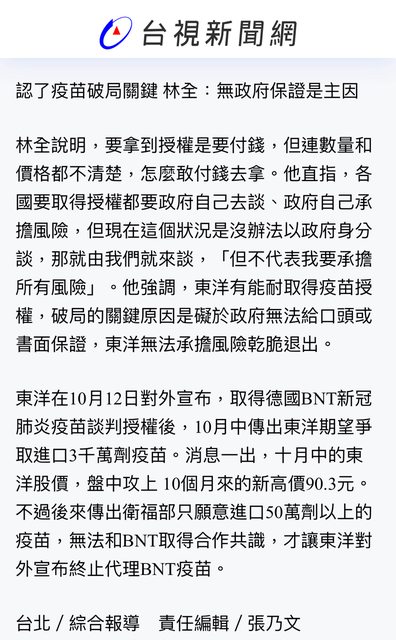 最後東洋因為政府部門的卡關,擔心自己虧損的情形下,終止在2021年第一季引進BNT的
