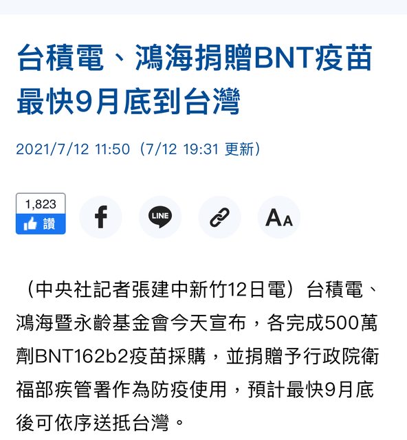 但是台積跟鴻海的疫苗2021/9底就能進台灣?