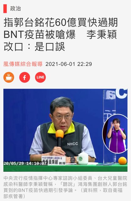 然後鴻海說好吧,政府買不到鴻海來買,捐給政府,結果政府還是一直阻擋鴻海捐疫苗!