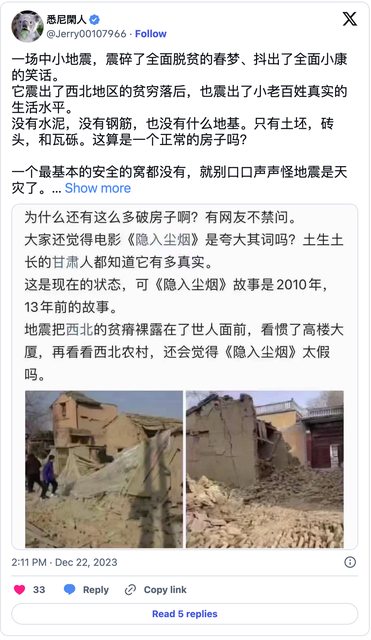 標題[新聞] 甘肅地震 揭穿中共全面脫貧的造假謊言