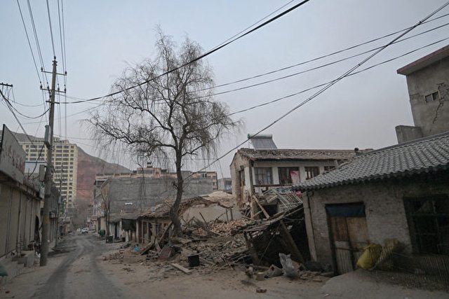 地震後,12月19日,甘肅積石山縣大河家鎮的建築物嚴重損毁。(Pedro Pardo/AFP)