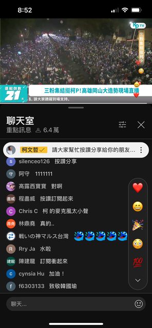 結果聽到主持人說大家把手機的LED燈打開讓柯文哲看到你的燈光在…