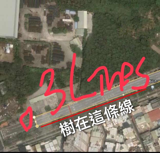 所以你的 “樹在這條線” 圖完完整整就是塞滿了五線道加一線停車格