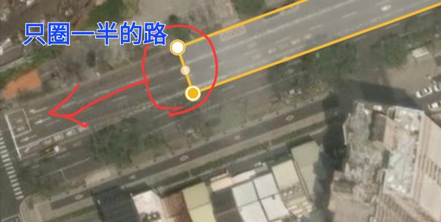 : : 但是四叉貓寬度只拉了道路的 1/2