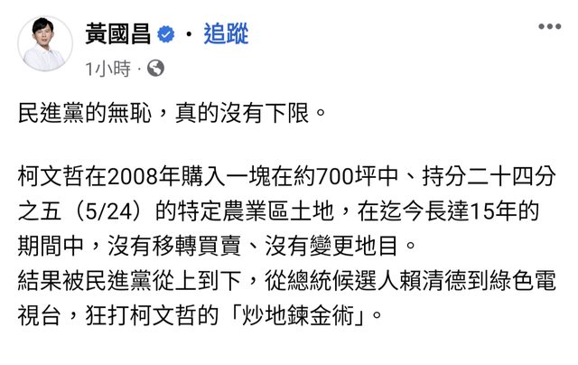 推 malisse74: 黃國昌現在洗不是炒地 42.77.229.214 12/24 14:32