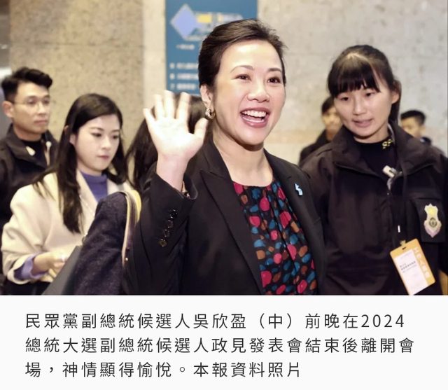 民眾黨副總統候選人吳欣盈22日在副總統候選人政見發表會上,突然說出「還記得我小的時
