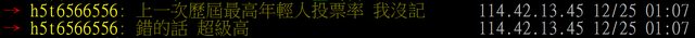 → h5t6566556: 上一次歷屆最高年輕人投票率 我沒記 114.42.13.45 12/25 01:07