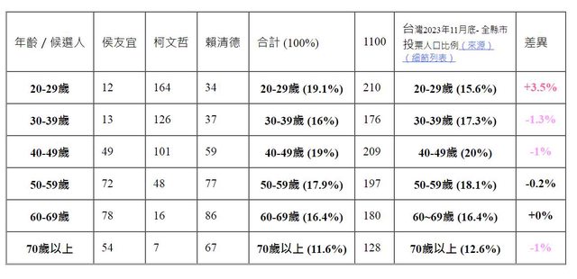 年紀篩選,20-29投的有點多+3.5%
