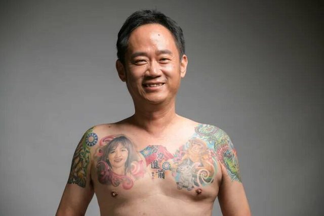 阮厚爵說,他10年前第一次刺青,選擇把老婆、縣議員林小琪的模樣刺在右胸膛,刺青師
