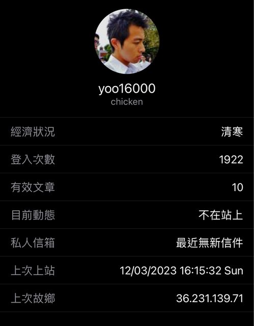《ID暱稱》yoo16000 (chicken) 《經濟狀況》清寒