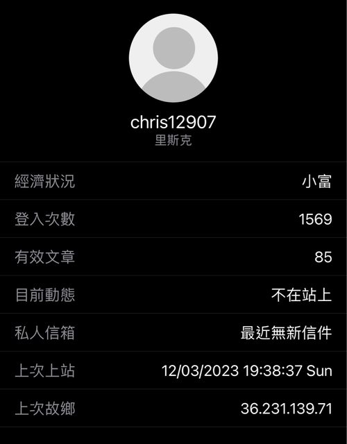 《ID暱稱》chris12907 (里斯克) 《經濟狀況》小富