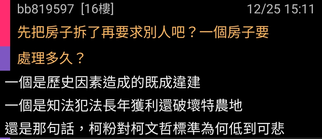 → fallinlove15: 賴清德是違建到現在還在騙 那鐵定 123.51.246.80 12/25 15:28