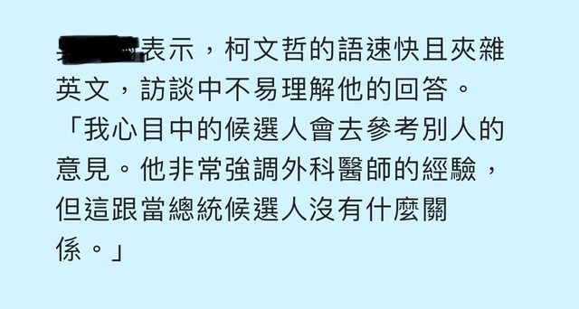 : 但柯文哲太過強調當外科醫師的經驗,這跟當總統沒什麼關係