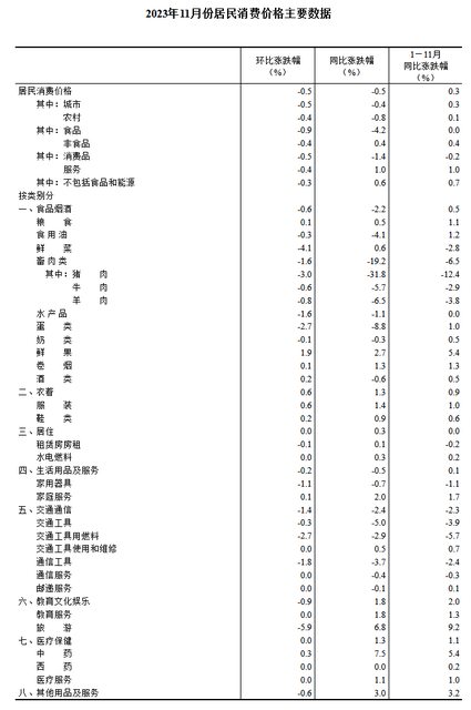 勞力服務品項的CPI則是11月份上漲1%,1~11月份準全年同比上漲1%,光看這邊就知道大