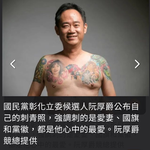 標題[新聞] 彰化第一選區阮厚爵公布刺青照 駁黑道傳聞「3圖案都是最愛」