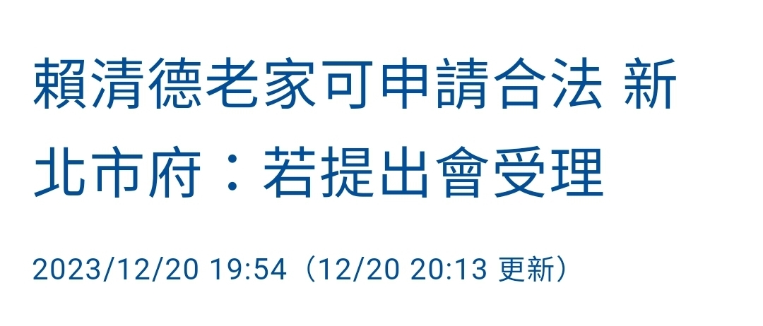 推 jacklyl: 可是賴清德自己說要依照新北認定欸,現 106.64.152.198 12/26 00:20