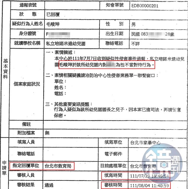 : 會局、教育局早已得知培諾米達幼兒園性侵事件,會議記錄也明載「評估本案成立妨害性