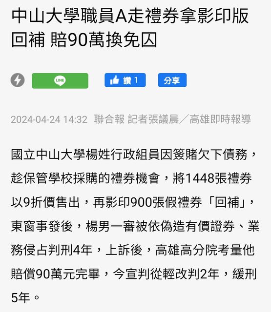 → wjk1113: 台灣,這樣有沒有圖利罪? 27.52.133.219 09/13 09:08
