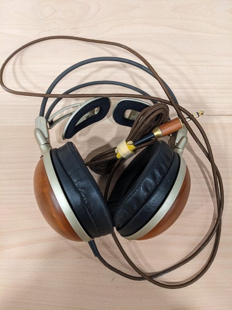 聲音正常,兩側木殼有輕微刮痕,耳罩真皮無風化但有輕微塌陷