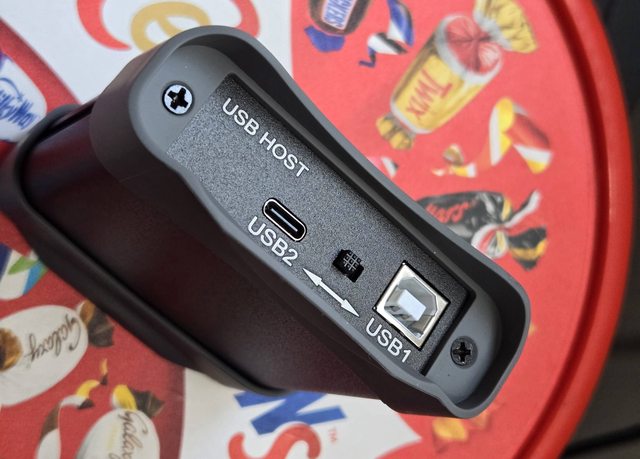 透過撥桿決定訊號輸入口,兩個口都能供電,都插的話可以同時供電