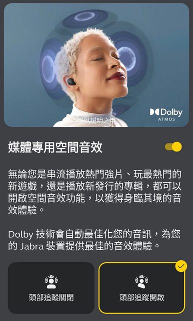 -頭部追蹤,很有意思的功能,可以偵測頭部轉動去調整音量的大小
