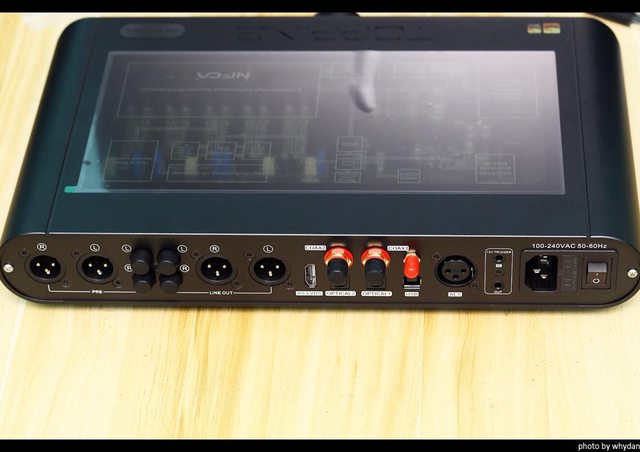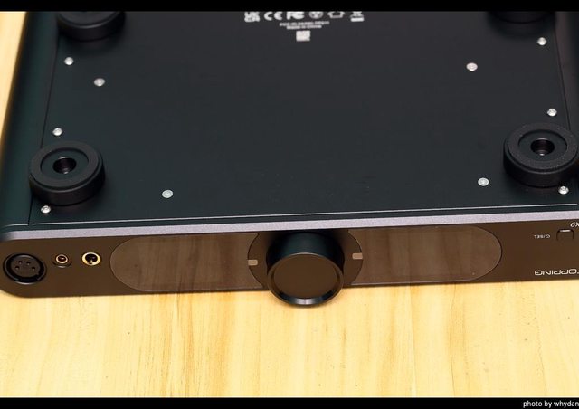 前面板有開關/選擇鍵,兩片顯示面板,旋鈕,6.3mm單端,4.4mm/XLR平衡輸出