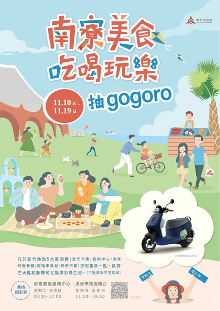 產發處說明,「南寮美食、吃喝玩樂抽Gogoro」活動期間自11月10起至11月19日止,歡迎