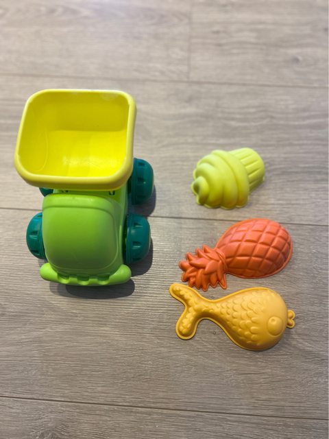 2. 挖沙玩具(塑膠卡車、b toy模具x3)