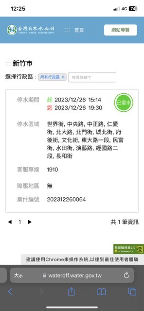 推 a19961119 : 我也在南大路,突然沒水了 12/27 00:43