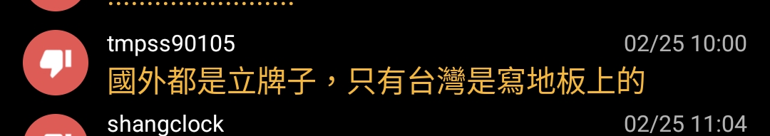 噓 tmpss90105 : 國外都是立牌子,只有台灣是寫地板上的 02/25 10:00