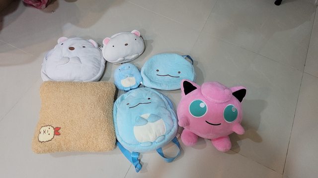 物品項目:絨毛娃娃 絨毛包包 絨毛抱枕,目視有明顯髒污,照片因為光線關係,看不出