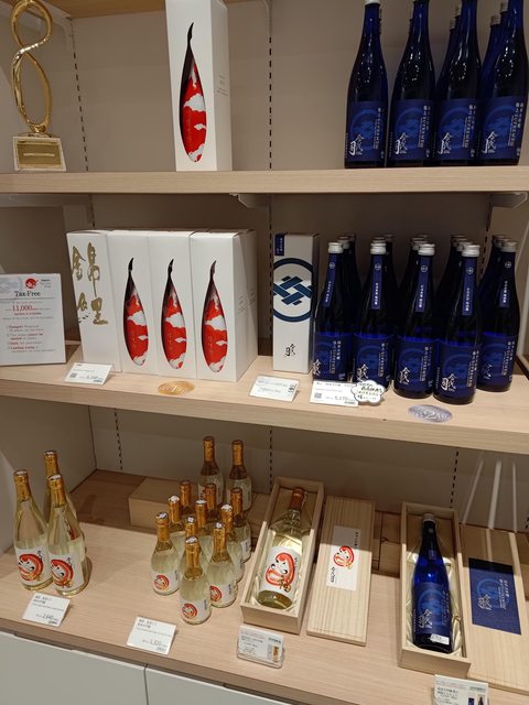 好處是距離新潟車站很近的酒廠,公車大約5分鐘左右到達,走路在1km左右,鯉魚瓶身跟部分採用當地越淡麗米釀造是特色。