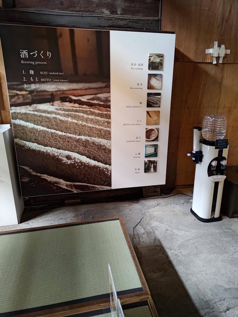 就可進去參觀,可以看到發酵桶,壓榨間整修中只有看圖片,今代司酒廠的歷史跟商品發展,精米步合與酒等級,火入殺菌的水槽。還有當地出身小川悅司漫畫老師的作品。