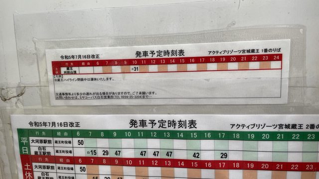 「宮城交通バス 村田町・蔵王町・遠刈田行き」