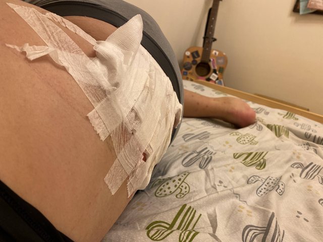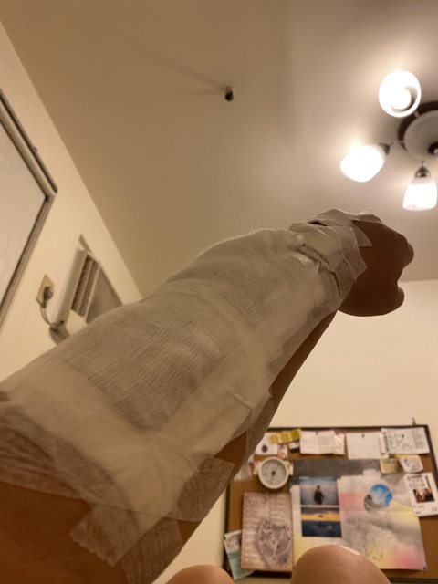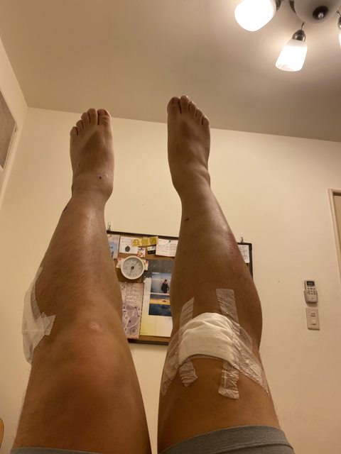 四肢都有擦傷以外,傷得最重的右手臂整片皮膚都磨光了