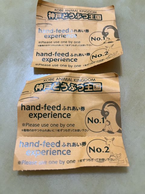 去了神戶動物王國得,獲得兩張餵食卷,企鵝跟綿羊,但是沒使用,上面未標示期限,贈給