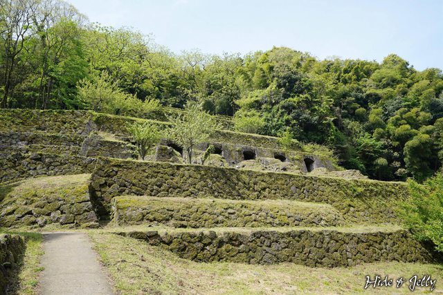 往內走沒多遠,就可以看到長著青苔相當翠綠的多段石垣,這裡就是石見銀山常出現在雜
