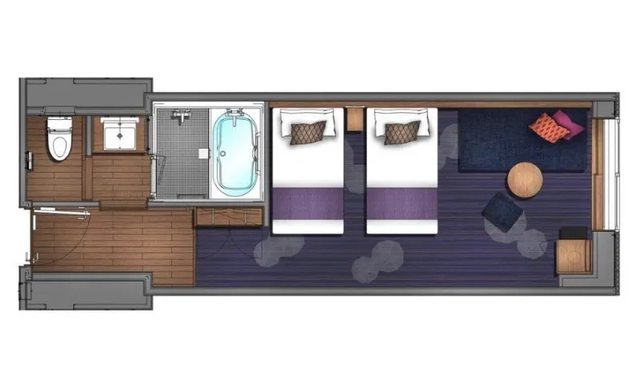 三人房面積寬敞,2個29吋行李箱對開平放沒問題。