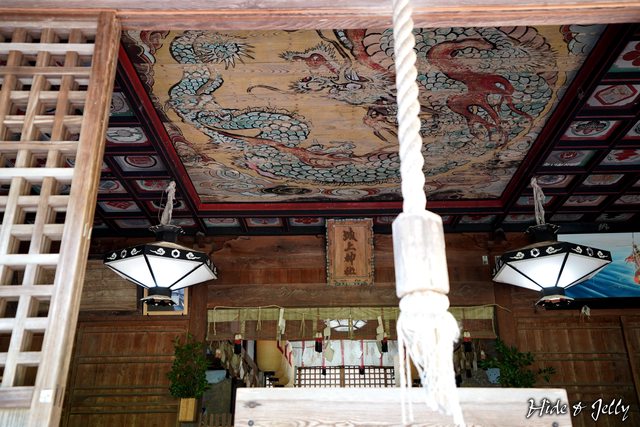 神社本殿天花板有一幅兩百年歷史的騰龍畫作,也是神社的看點之一,別忘了抬頭欣賞一
