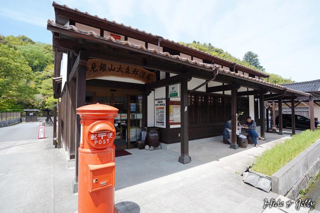 當然,石見銀山大森郵便局也是棟老宅,前方還有復古的郵筒,只可惜我們造訪時是周日