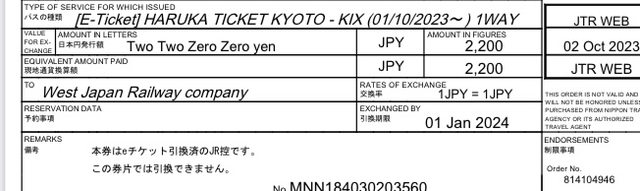 標題[讓售] HARUKA 京都車站-關西機場車票
