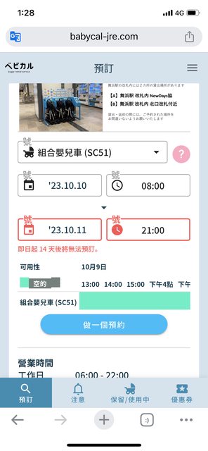 比如說 我要預約10/10 08:00~10/11 21:00