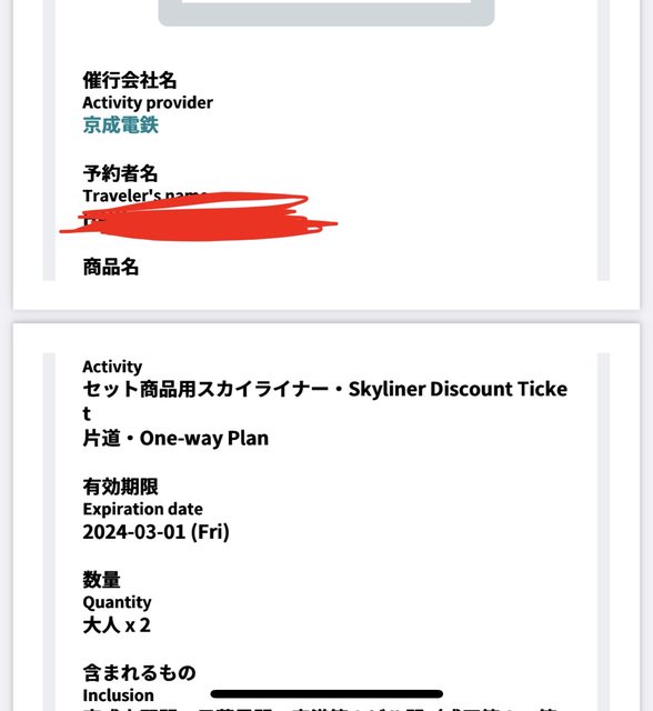1. 讓售品項:Skyliner京成電鐵車票2張(單程)