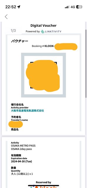 標題[讓售] 大阪地鐵巴士乘車券 二日券