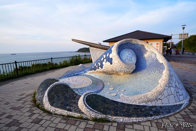 地標的另一面,有捲起的海浪,連同停車場這小小的敷地稱為「海士ヶ瀬公園」。