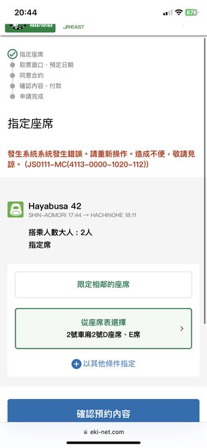 推 Fate1095 : 試試看訂普通位,我訂TRAIN DESK也顯示錯誤 10/16 20:54