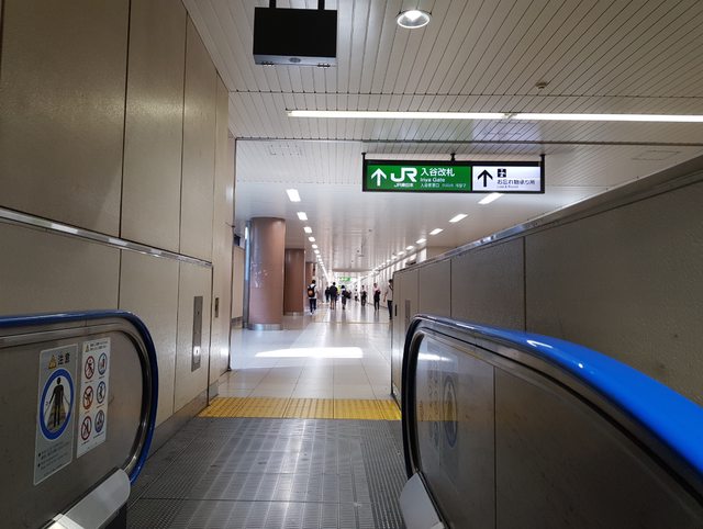 : 那麼使用 SUICA 走進入谷口後,去搭日比谷線,搭地鐵出任意站後走人工通道