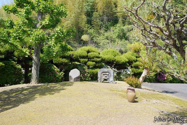 資料館前的庭園,擺放著曾在山口城使用過的毛利家紋鬼瓦,體積蠻大且應該頗珍貴的古