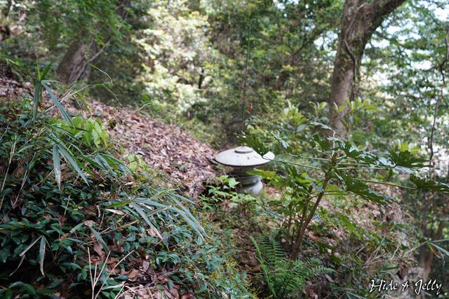 一旁的草叢堆中,可以看到一座作工精細且幾乎完整的石燈籠,這有點違和感的石燈籠,