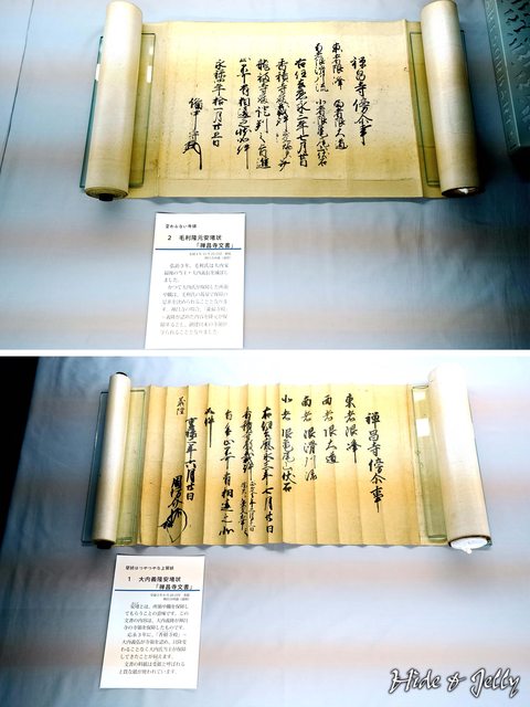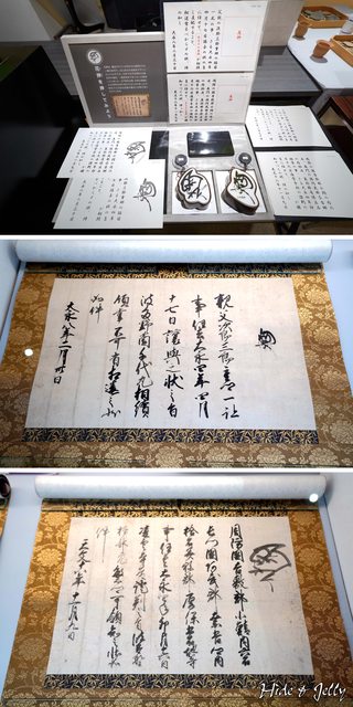 一進入展示室就可以看到大大的印章(上圖),原來是仿照大內義隆、義興父子的花押(中
